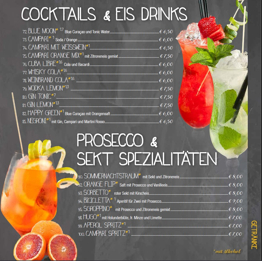 Wenn es draußen mal heißer ist erfrischen wir Sie mit leckeren Cocktails, Drinks und Soft Drinks