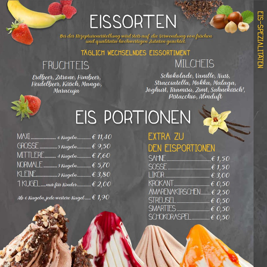 Wir verwenden für die Zubereitung unserer Eisspezialitäten nur frische Zutaten und keine künstlichen Farbstoffe